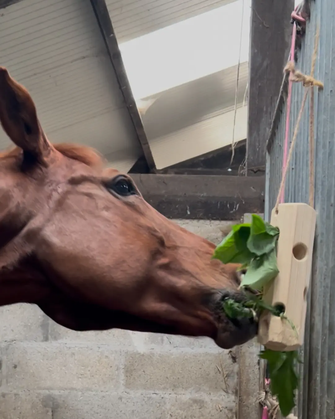 - des branches ou des plantes, pour stimuler l’instinct exploratoire et occuper ton cheval de manière ludique et saine.